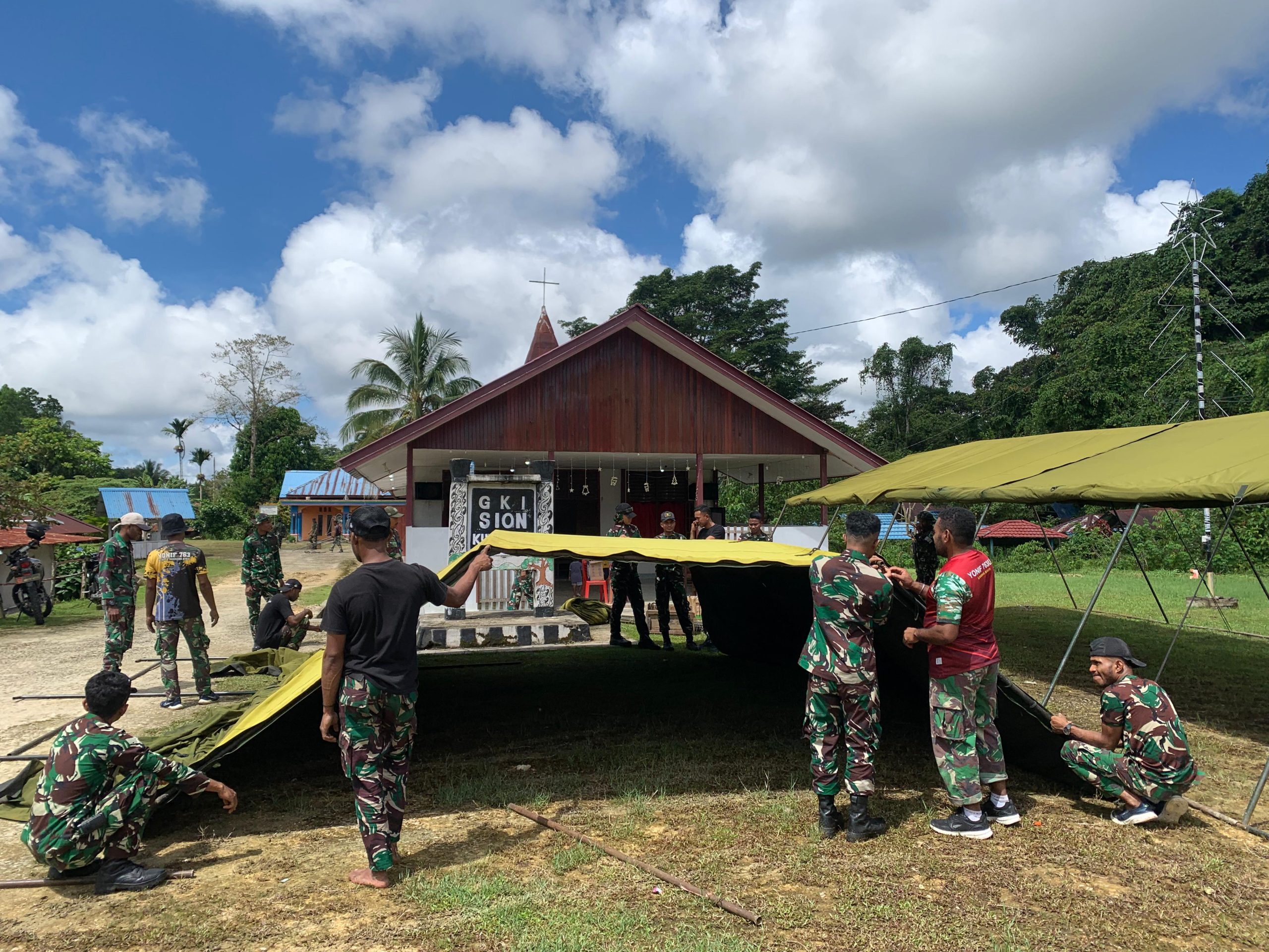 Dengan kehadiran TNI dalam membantu persiapan ini, semangat kebersamaan semakin terasa. Kami sangat bersyukur dan bangga atas kepedulian Satgas terhadap kegiatan rohani kami.