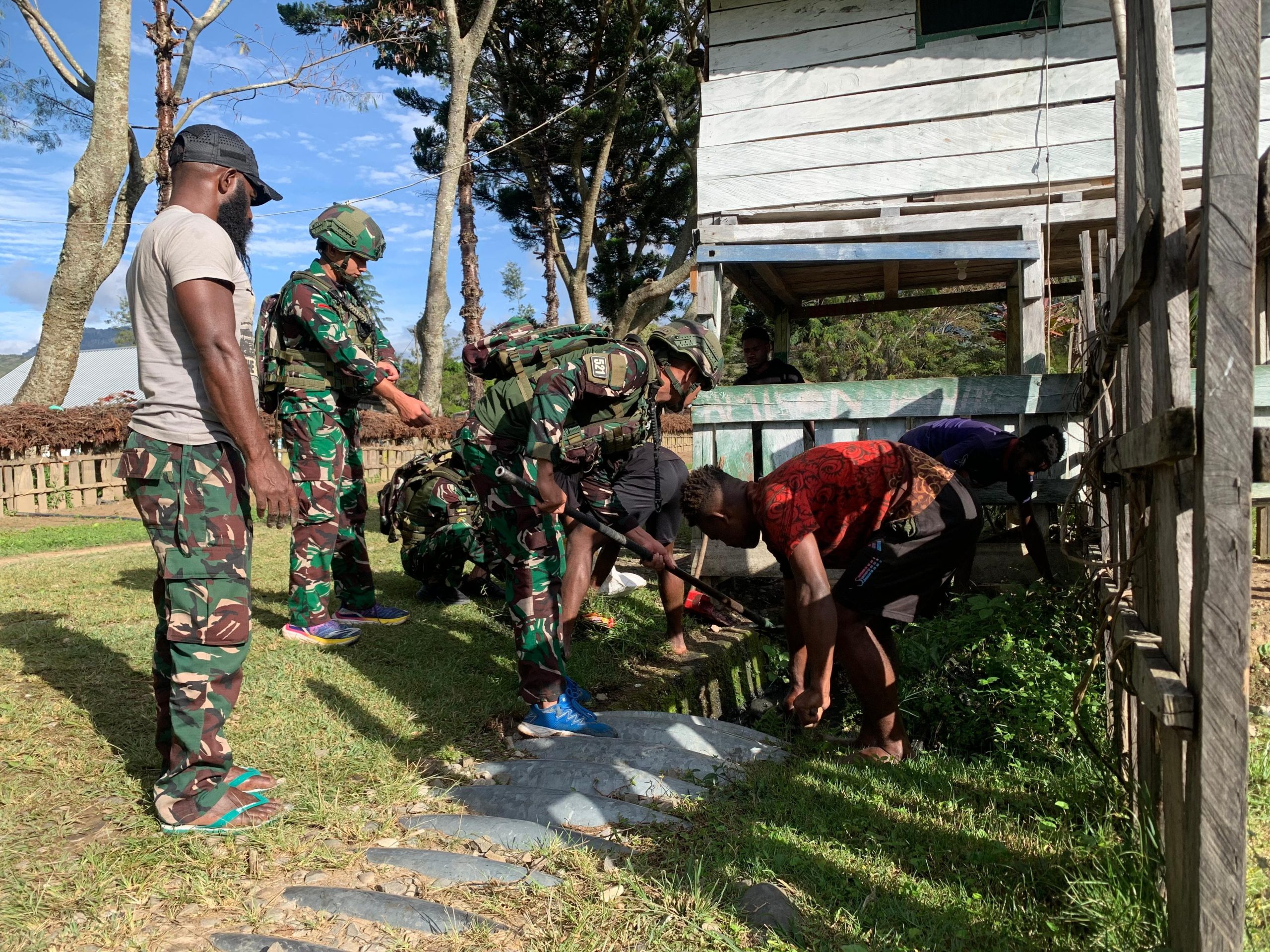 Jayawijaya, –“Menyatu Karya Bhakti” dalam konteks ini merujuk pada kegiatan gotong royong atau bakti sosial yang dilakukan oleh Satgas Yonif 521/DY Pos Bolakme bersama masyarakat, Kegiatan ini bertujuan untuk membersihkan lingkungan, seperti sungai dan jalan utama serta berinteraksi langsung dengan masyarakat untuk membangun kebersamaan dan kepedulian terhadap lingkungan di di Distrik Bolakme, Kabupaten Jayawijaya. (16/07/2025).