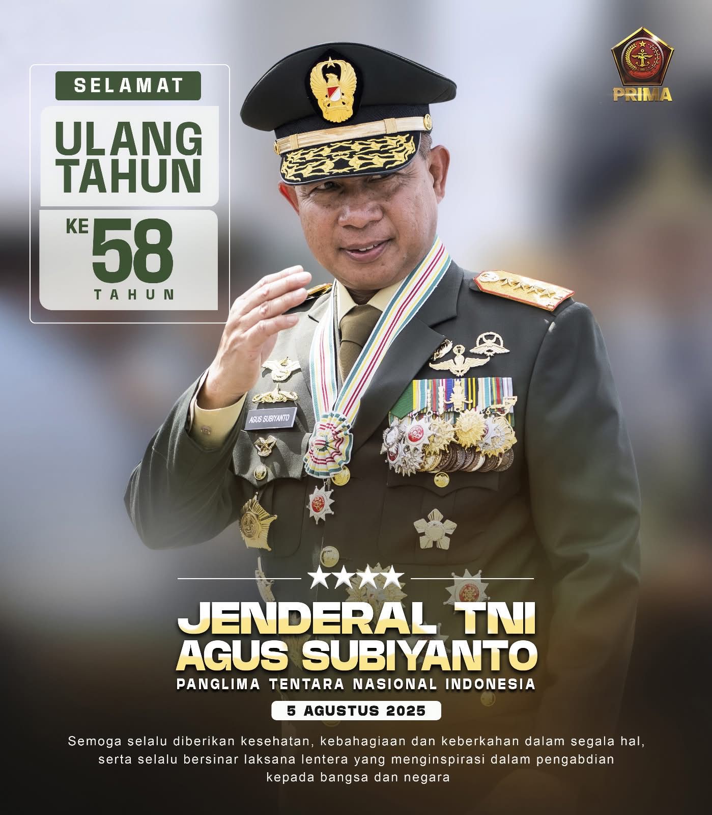 Peringatan Ulang Tahun ini menjadi momen penting yang tidak hanya dirayakan secara pribadi,Tetapi juga dimaknai sebagai refleksi dan indikasi Jendral AGUS SUBIYANTO dalam mengemban Amanah sebagai panglima TNI.