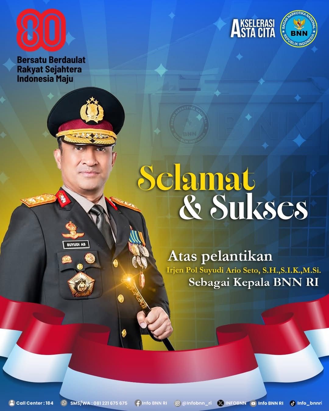Selamat Kepada Irjen Pol.Dr.Suyudi Ario Seto ,SDH . S.I.K.M.Si. Yang Resmi Dilantik oleh Presiden Republik Indonesia, prabowo Subianto ,Sebagai kepala Badan Narkotika Nasional Indonesia (BNN RI ).