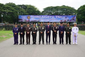 Banda Aceh — Kapolda Aceh, Irjen Pol. Marzuki Ali Basyah, menghadiri upacara peringatan hari ulang tahun (HUT) ke-80 Tentara Nasional Indonesia (TNI) yang digelar di Lapangan Blang Padang, Banda Aceh, Minggu, 5 Oktober 2025.