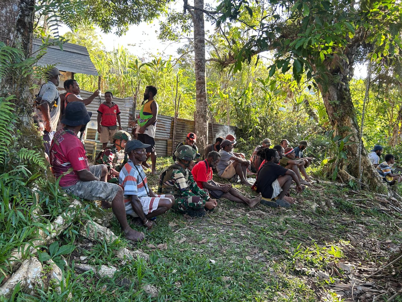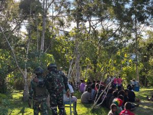 Yalimo, –Personel Satgas Yonif 521/DY turut menghadiri acara doa bersama yang digelar masyarakat Distrik Apalapsili dalam rangka perbaikan pembangunan bandara di wilayah Distrik Apalapsili, Kabupaten Yalimo. (20/10/2025).