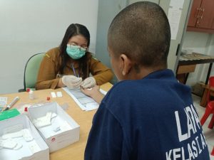 Pelaksanaan VCT berlangsung di Klinik Pratama Lapas Batam dengan antusiasme tinggi dari para warga binaan. Sebelum dilakukan pengambilan sampel darah, peserta terlebih dahulu mendapatkan sesi penyuluhan dari tenaga kesehatan Puskesmas Sei Langkai mengenai pentingnya menjaga kesehatan, pencegahan penularan HIV/AIDS, serta manfaat mengetahui status kesehatan diri sejak dini.
