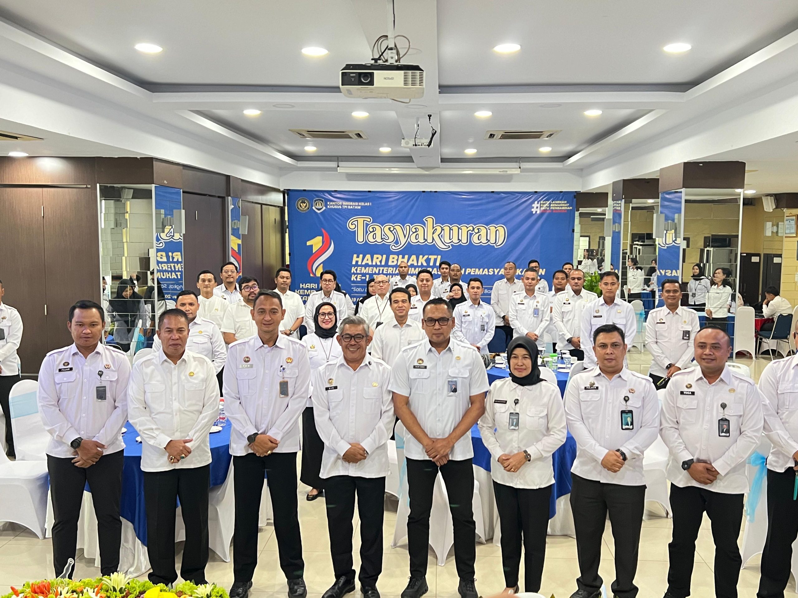 Batam – Kepala Lembaga Pemasyarakatan Kelas IIA Batam, Yosafat Rizanto, menghadiri kegiatan Tasyakuran ke-1 Kementerian Imigrasi dan Pemasyarakatan yang diselenggarakan di Aula VIP Kantor Imigrasi Khusus (Kanimsus) Kelas I Batam, Rabu (19/11).