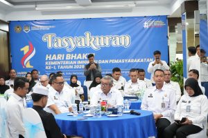 Usai sesi sambutan, kegiatan dilanjutkan dengan pemotongan tumpeng sebagai simbol rasa syukur atas perjalanan satu tahun Kementerian Imigrasi dan Pemasyarakatan. Rangkaian acara ditutup dengan pemberian santunan kepada anak yatim piatu, sebagai wujud kepedulian sosial serta komitmen institusi dalam menghadirkan manfaat bagi masyarakat.