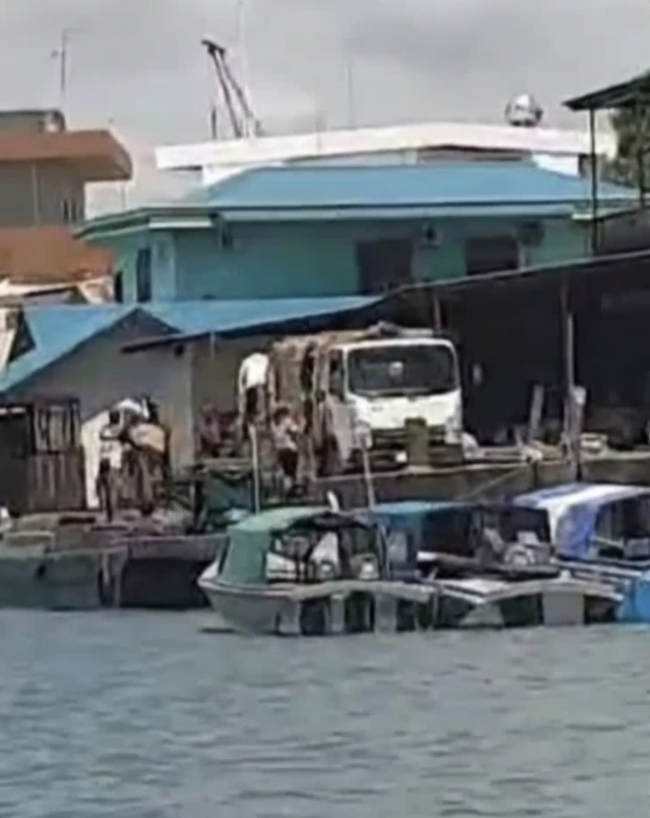 Berdasarkan pantauan di lapangan pada Kamis (16/4/2026), terlihat hilir mudik truk bermuatan penuh menurunkan barang langsung ke kapal-kapal kayu bertonase besar, serta speedboat. Kapal-kapal tersebut diketahui melayani rute tujuan Tanjung Uban dan Tanjung Pinang.